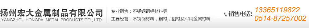 揚州宏大是揚州地區最具規模和影響力的不銹鋼銅鋁專業經銷公司之一。專業代理為客戶提供各種類型不銹鋼銅鋁材。我公司不僅擁有國內的不銹鋼,寧波寶新,張家港浦項,上??死詹?,上鋼三廠,昆山大庚等產品的代理銷售,同時代理芬蘭outokumpu、法國Ugine、西班牙ACERINOX、韓國POSCO和臺灣燁聯等國際品牌的產品